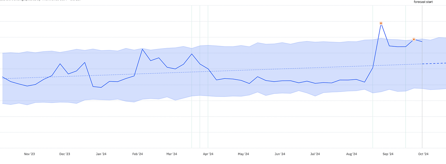Using Amplitude’s ‘Anomaly + Forecast’ feature would provide a clearer view of the trend for the charts.